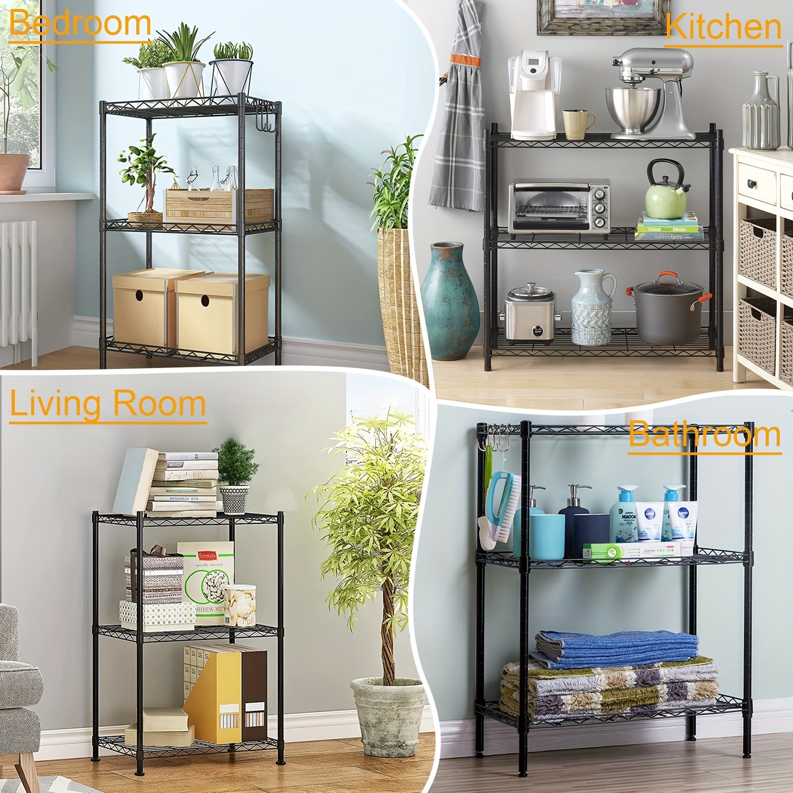 5-Tier Metal Storage Rack, Floor Standing Multipurpose Shelving Unit with Powder Coated Finish, Adjustable Tiered Shelf for Kitchen, Bathroom, Living Room, Bedroom - Black