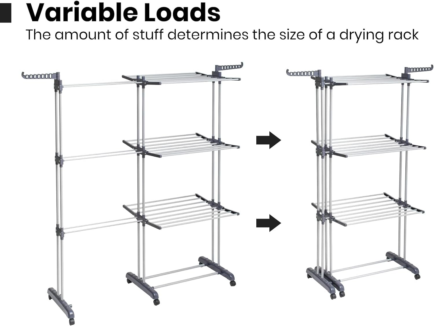 - [DURABLE]: The drying rack is made of a combination of painted galvanized steel pipe and plastic. Not easy to rust and break. Each layer can bear up to 5kg and each side wing can bear up to 3kg