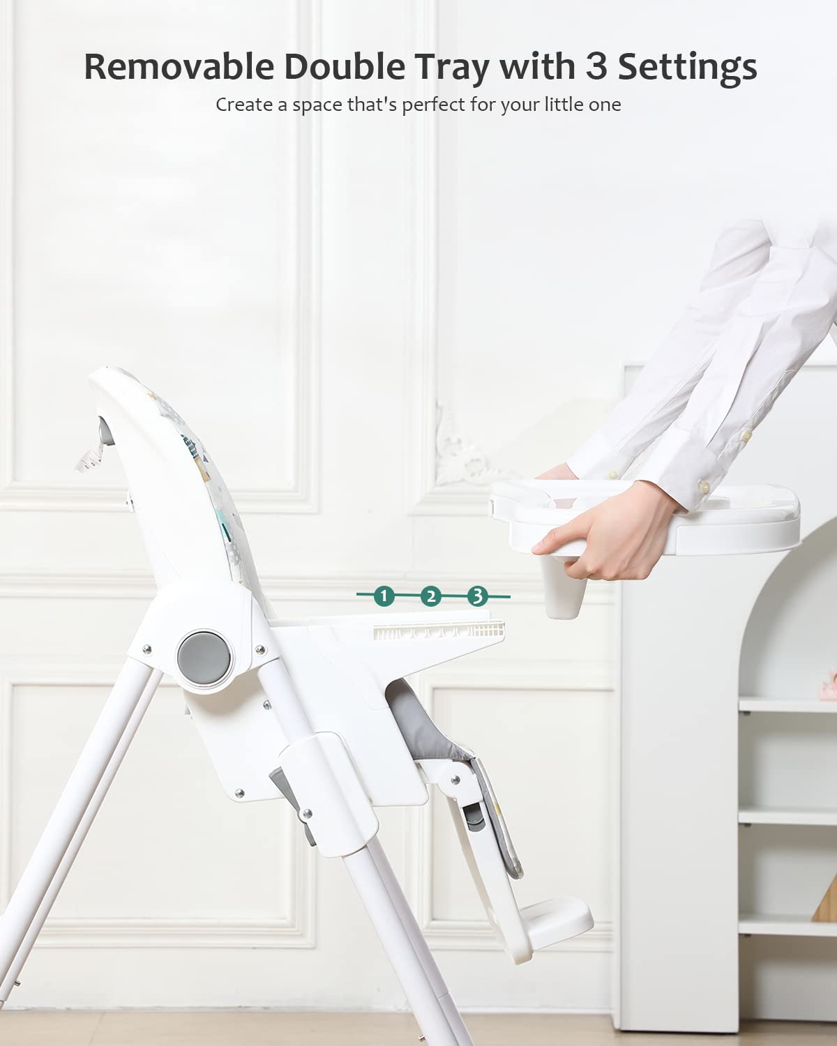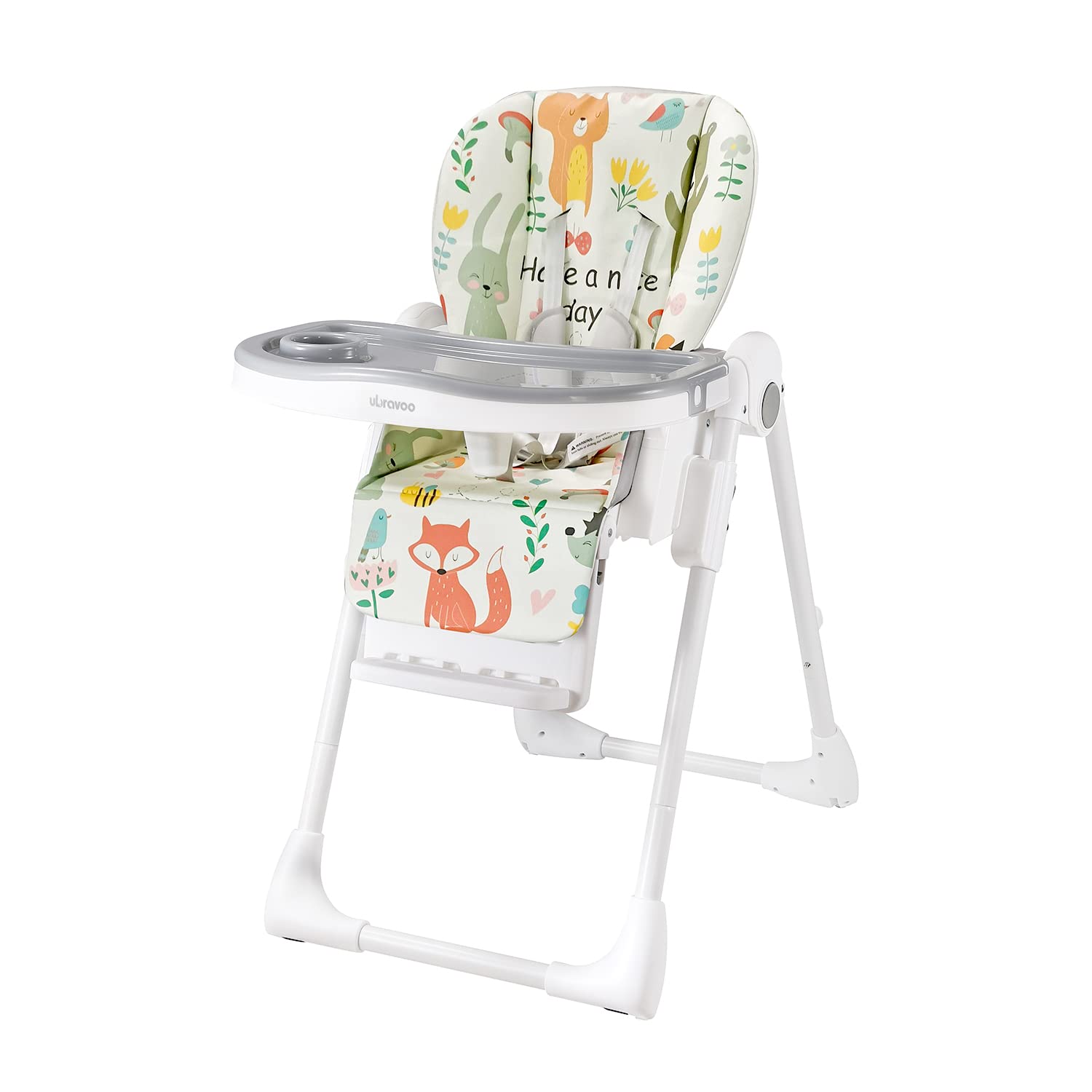 UBRAVOO Baby Hochstuhl 0 Monate Plus Fantasy Realm, Baby Ess Hochstuhl faltbarem, doppel Tablett, leicht zu reinigender Hochstuhl zum Füttern für Babys und Kleinkinder, ACE1023-GS (Animal World)
