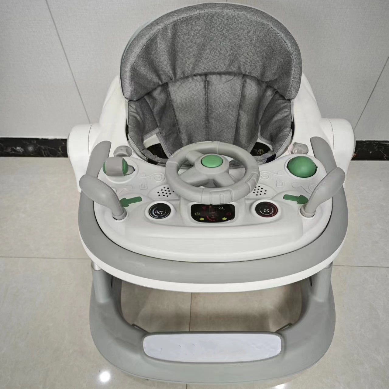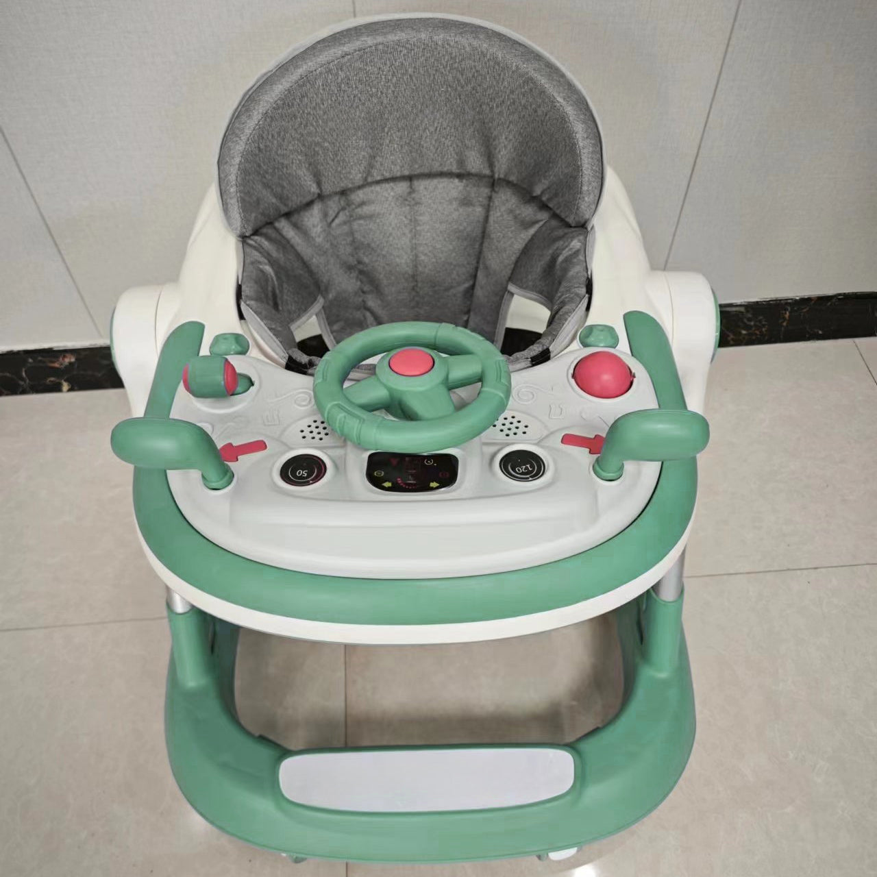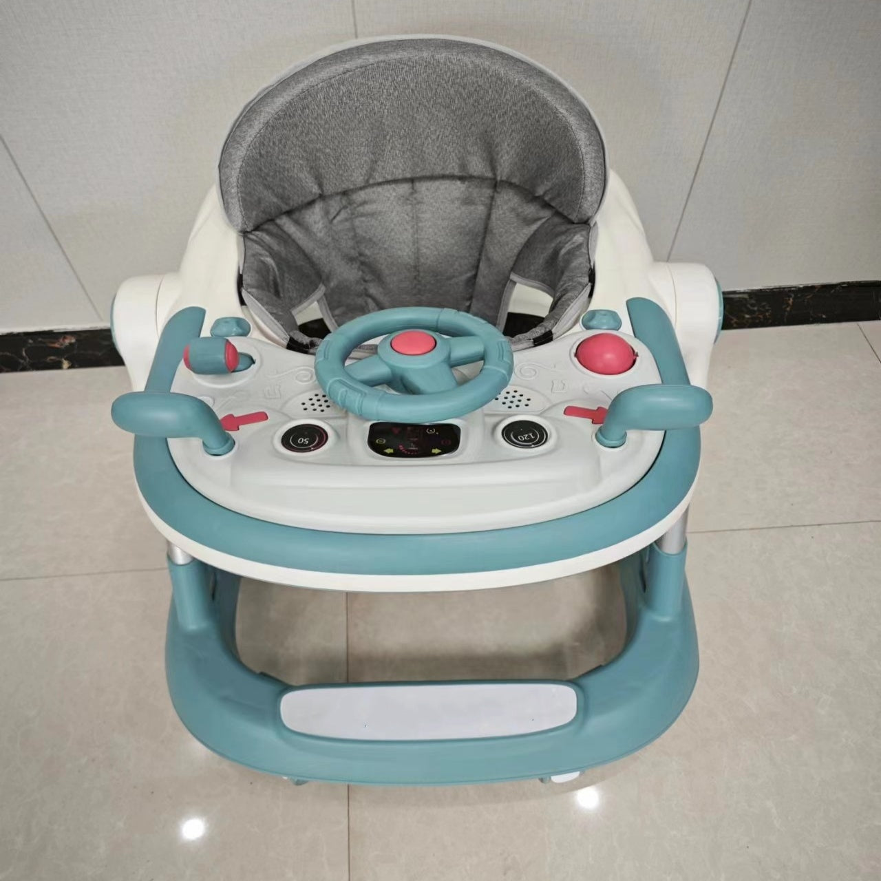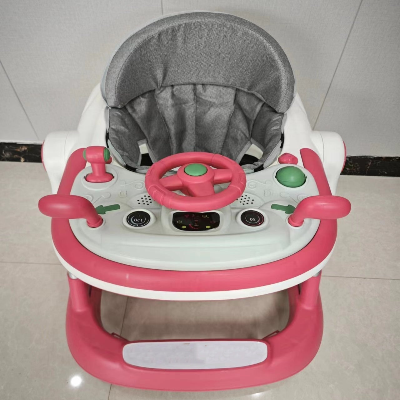 The walker is equipped with auxiliary brakes, which can prevent from falling off the stone steps while playing. in addition, our walker is equipped with a safety bumper under the seat, effective safe distance protects the head from collision.