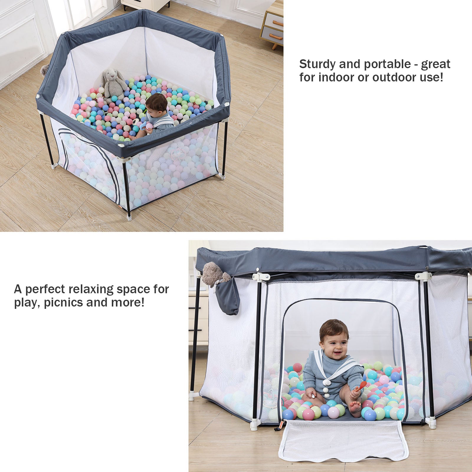 UBRAVOO Baby-Laufstall,faltbarer sechseckiger Baby-Laufstall,verbesserter robuster Sicherheits-Laufstall für Babys und Kleinkinder mit weichem,atmungsaktivem Mesh-Khaki