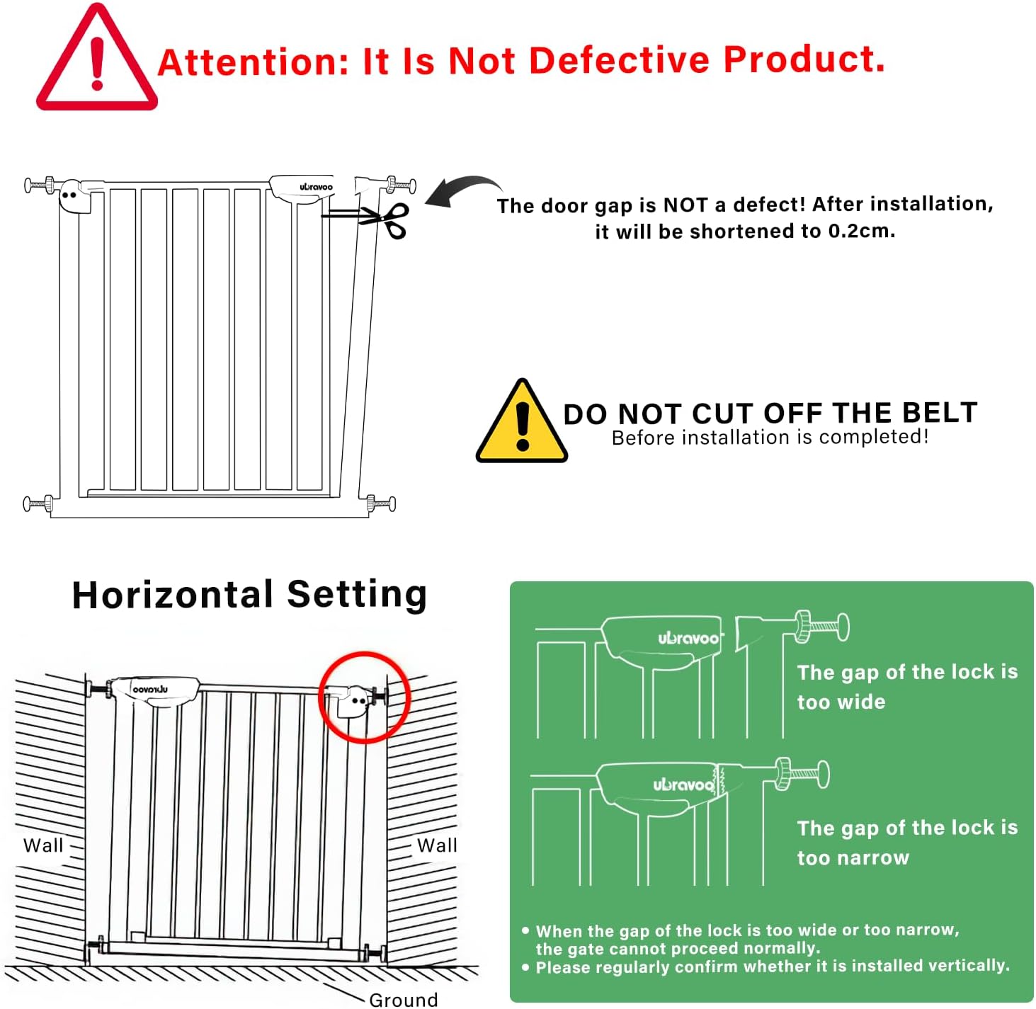 UBRAVOO Einfach zu installierendes, druckmontiertes Metallgitter für Babys/Haustiere, kein Bohren, kein Werkzeug erforderlich, mit Wandschutz und Verlängerungen