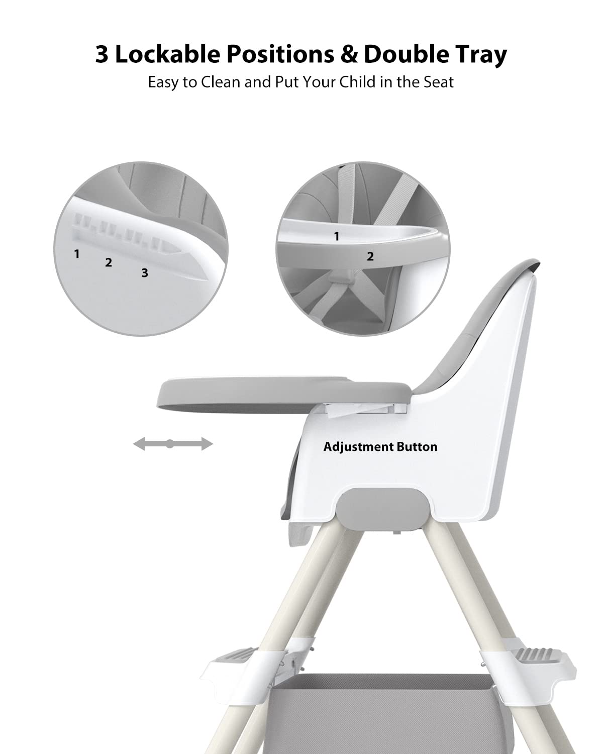 UBRAVOO Hochstuhl Baby, 2-in-1 Hochstuhl für Babys und Kleinkinder mit Fußstütze, abnehmbares Doppeltablett, Einfach zu Montierender Kinderhochstuhl für Jungen und Mädchen ab 6 Monate, HA-019 (Grau)