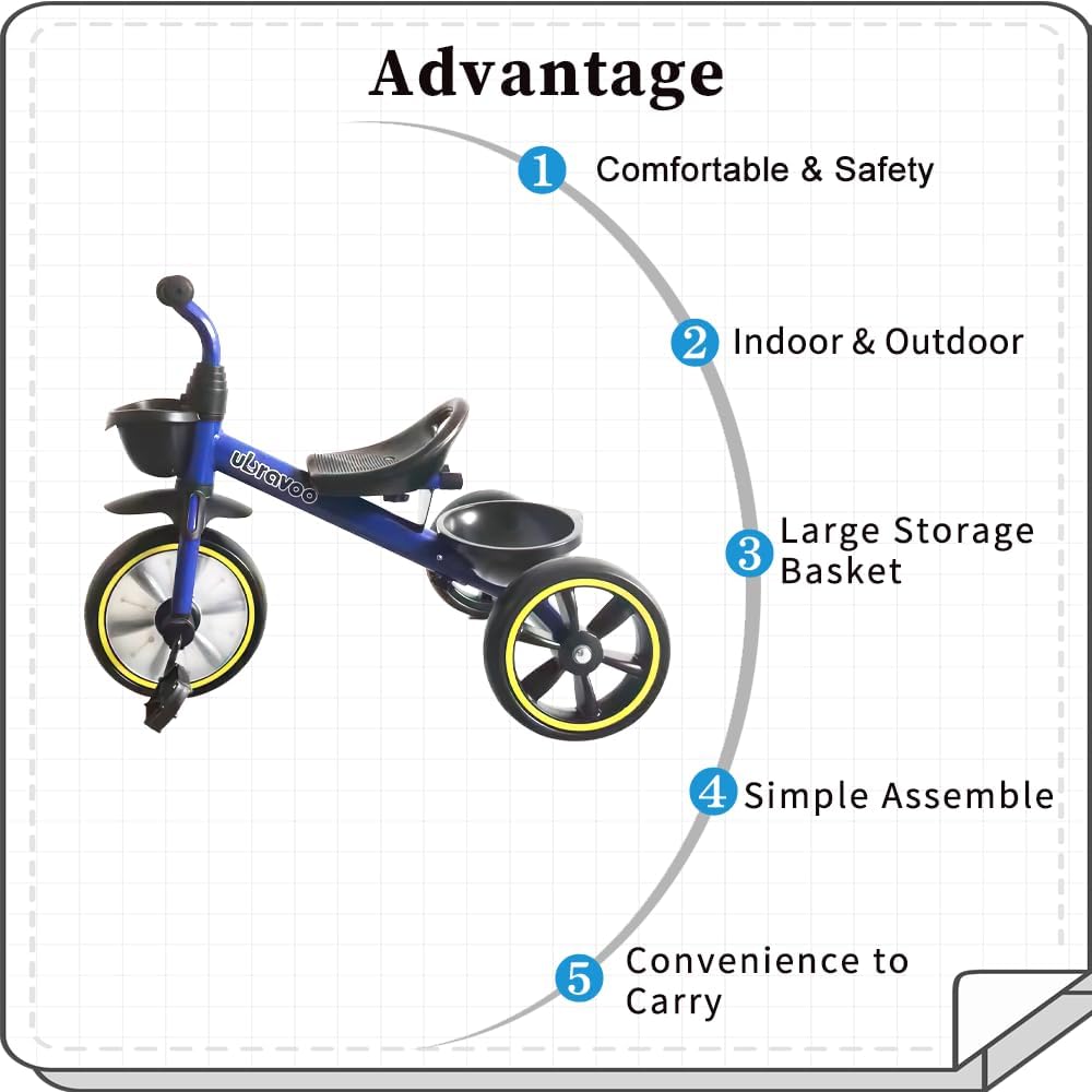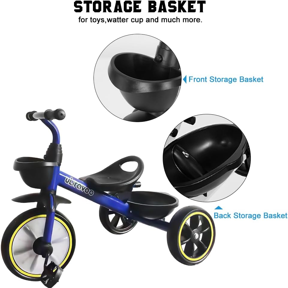 UBRAVOO Laufräder Kinderdreirad, Baby Dreirad, 3-Rad-Fahrrad für 2,5 bis 5/2-4-jährige Jungen und Mädchen, Dreirad mit Ablagekorb vorne und hinten