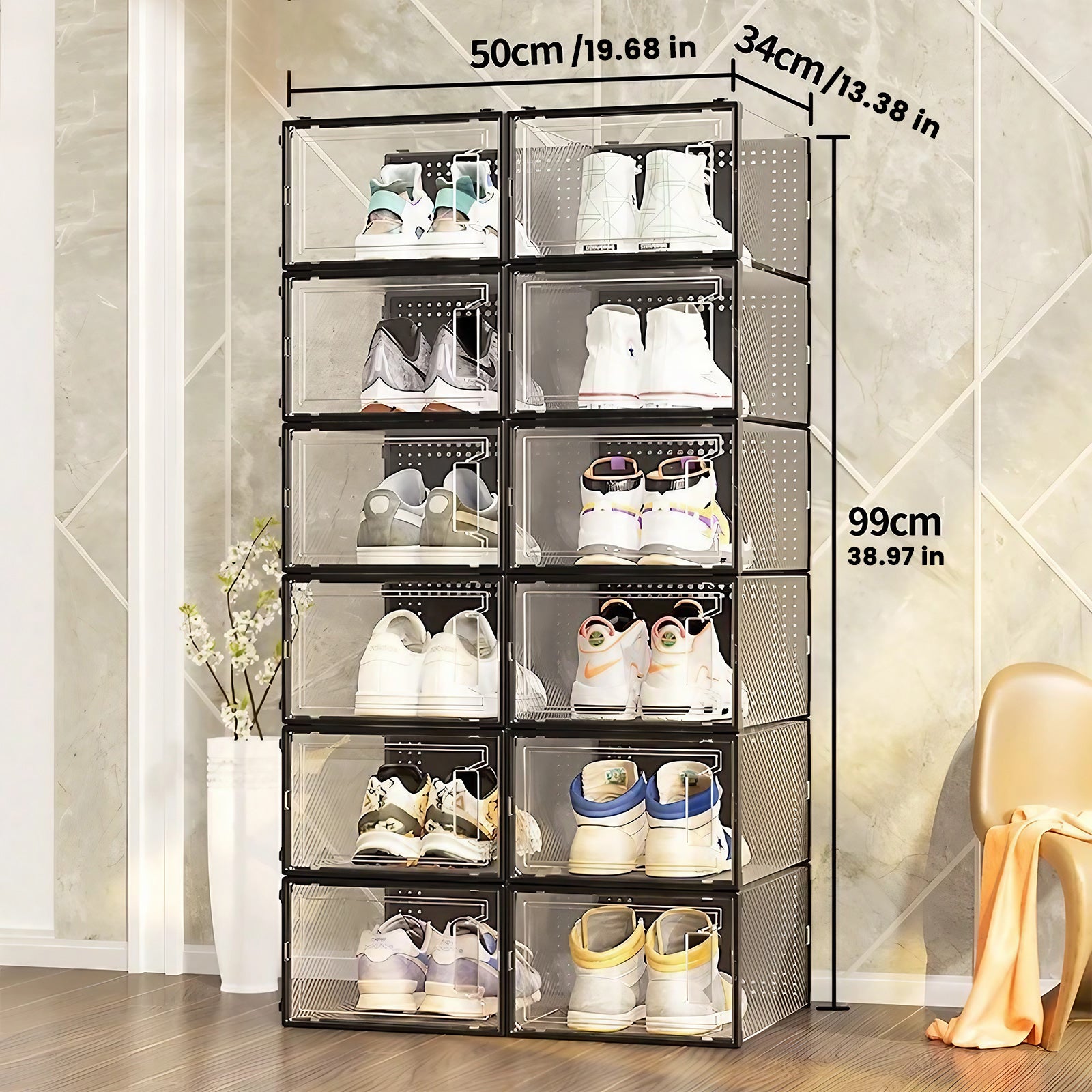 XL-Schuhaufbewahrungsboxen, Organizer für den Schrank, 12er-Pack, passend für Größe 11, durchsichtige, stapelbare Sneaker-Behälter aus Kunststoff für den Eingangsbereich, platzsparender Schuhregalhalter, Ersatz für Schubladen-Organisationseinheit